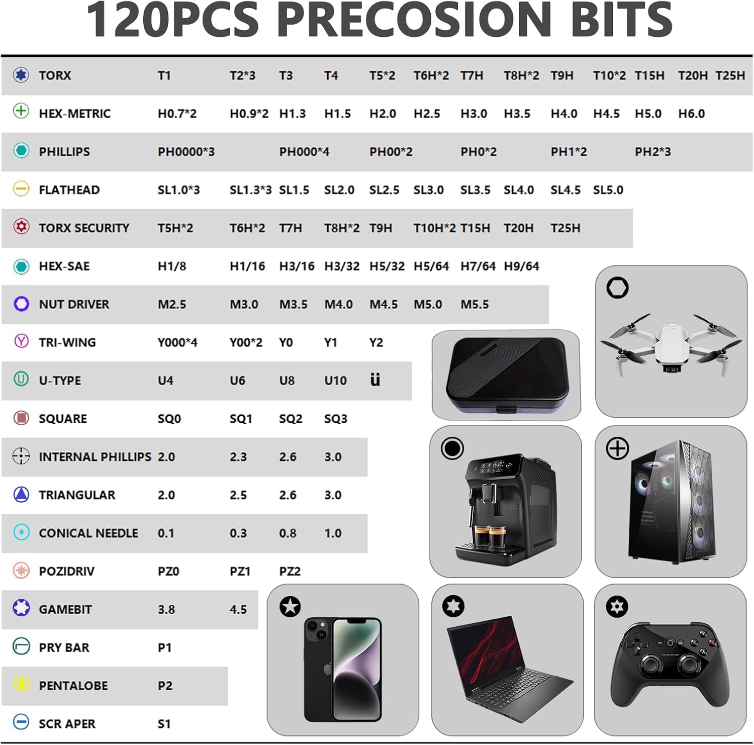 This versatile set is your all-in-one solution for maintaining and repairing a vast range of items. It is meticulously curated to be compatible with popular brands like Apple, Samsung, Sony, and Microsoft, covering devices from iPhones and MacBooks to Xbox controllers and drones. Eliminate the frustration of searching for the right tool and invest in a professional-grade set that brings order, precision, and capability to your projects.