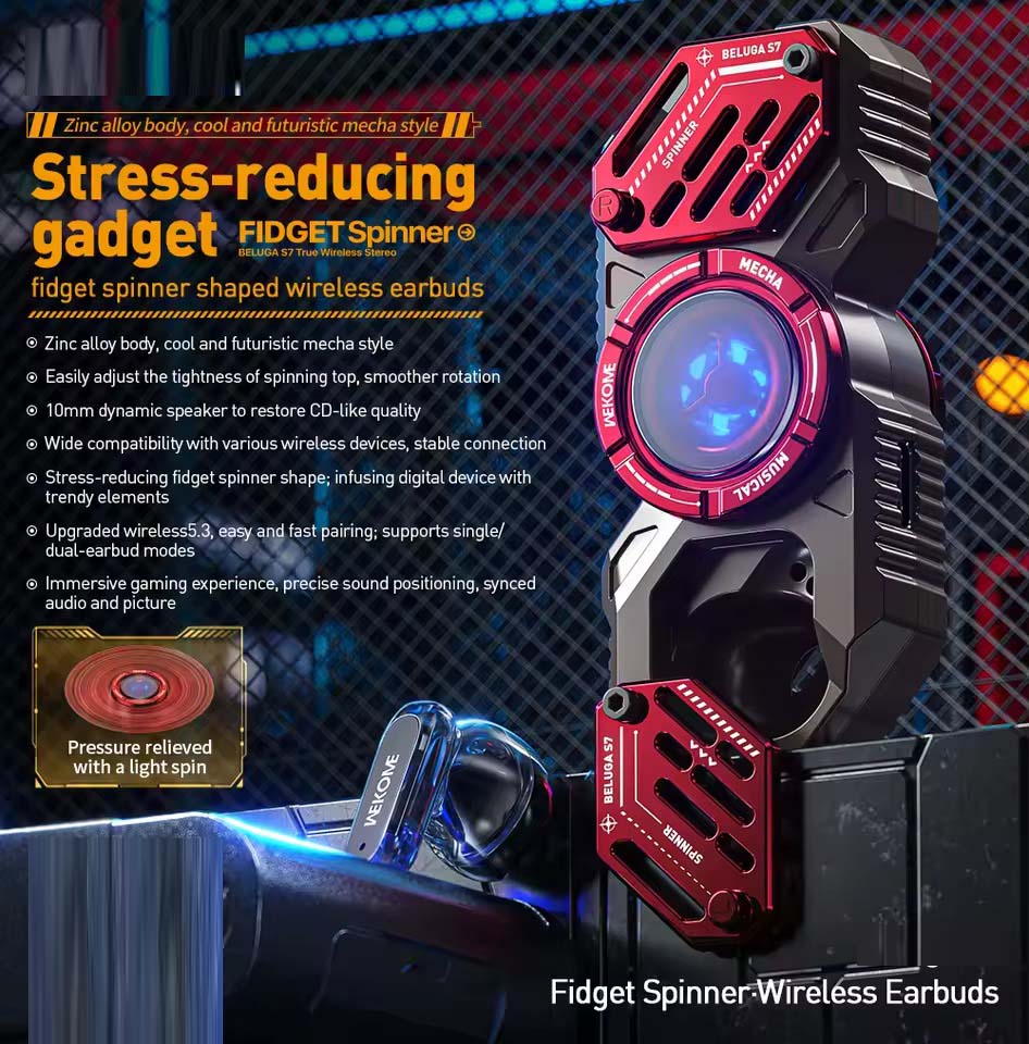 2-in-1 Functionality: Combines earphones with a built-in fidget spinner for stress relief and entertainment.