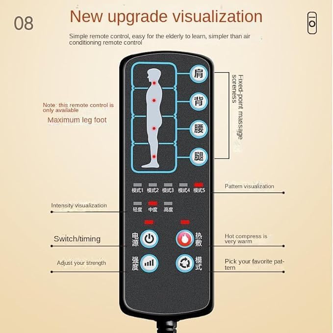 The ergonomic design fits perfectly on chairs, sofas, and car seats, making it ideal for use at home, in the office, or while driving. The infrared heat penetrates deep into muscles, promoting blood circulation and easing stiffness. With multiple vibration intensities and heat settings, you can personalize your relaxation session to suit your needs.