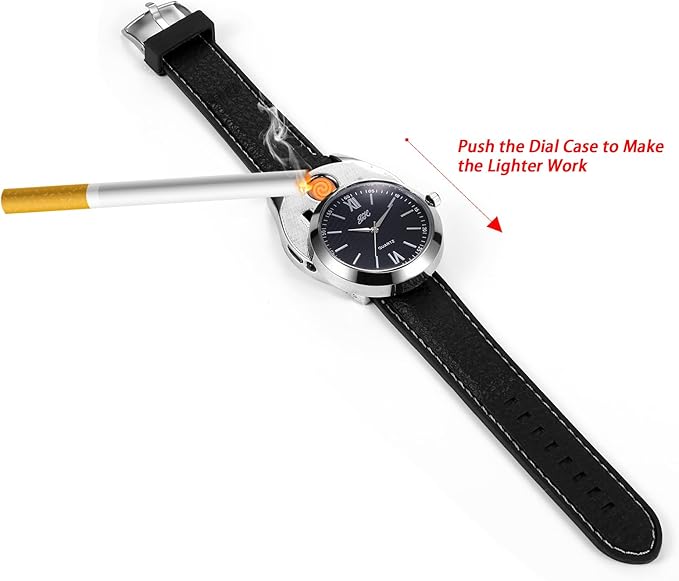 This waterproof watch is designed to withstand daily wear and occasional splashes, making it an excellent companion for outdoor activities or everyday errands. The USB rechargeable lighter eliminates the need for traditional fuel, providing an eco-friendly and reusable alternative. Simply charge via any USB port for a quick and efficient power-up.