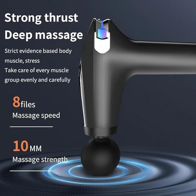 Equipped with multiple speed settings and interchangeable heads, the massage gun targets specific muscle groups to relieve tightness, improve circulation, and accelerate recovery. Its powerful yet quiet motor ensures a peaceful and efficient experience, making it suitable for use at home, in the gym, or on the go.